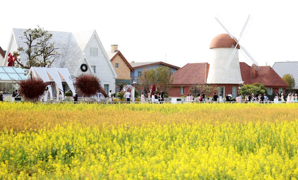 5月4日,游客在山东省临沂市郯城县醉东风乡村艺栈游览。