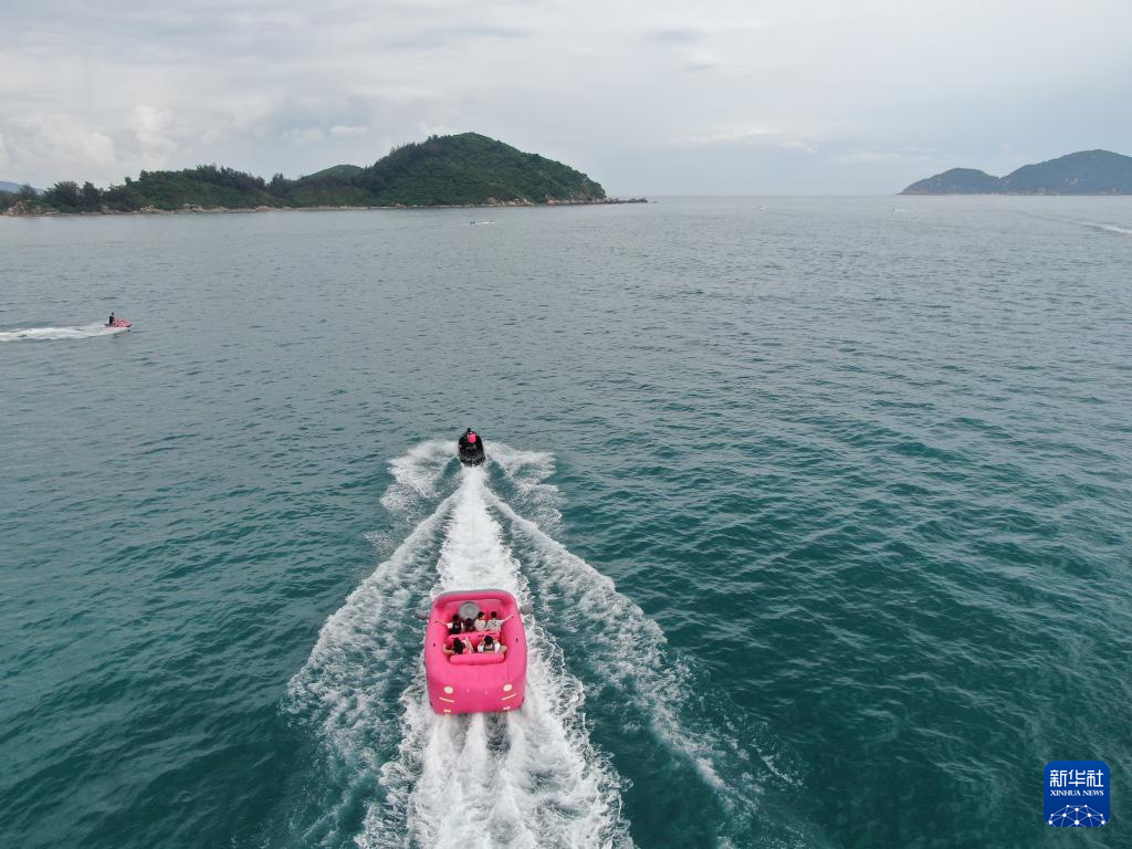 游客在海南万宁神州半岛体验海上游玩项目(2025年1月15日摄)。 新华社发