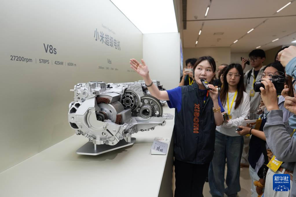 6月16日,参观者在北京小米汽车工厂的科技展厅了解小米超级电机。新华社记者 郑焕松 摄