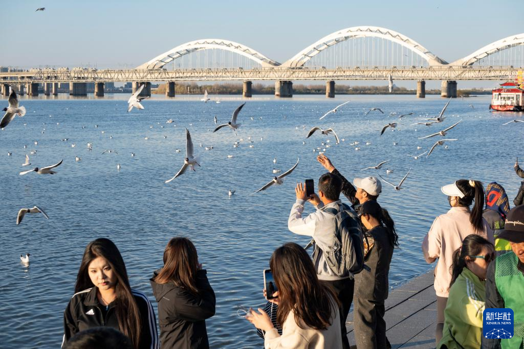 人们在松花江哈尔滨段江畔享受闲适时光(2025年4月22日摄)。新华社记者 谢剑飞 摄