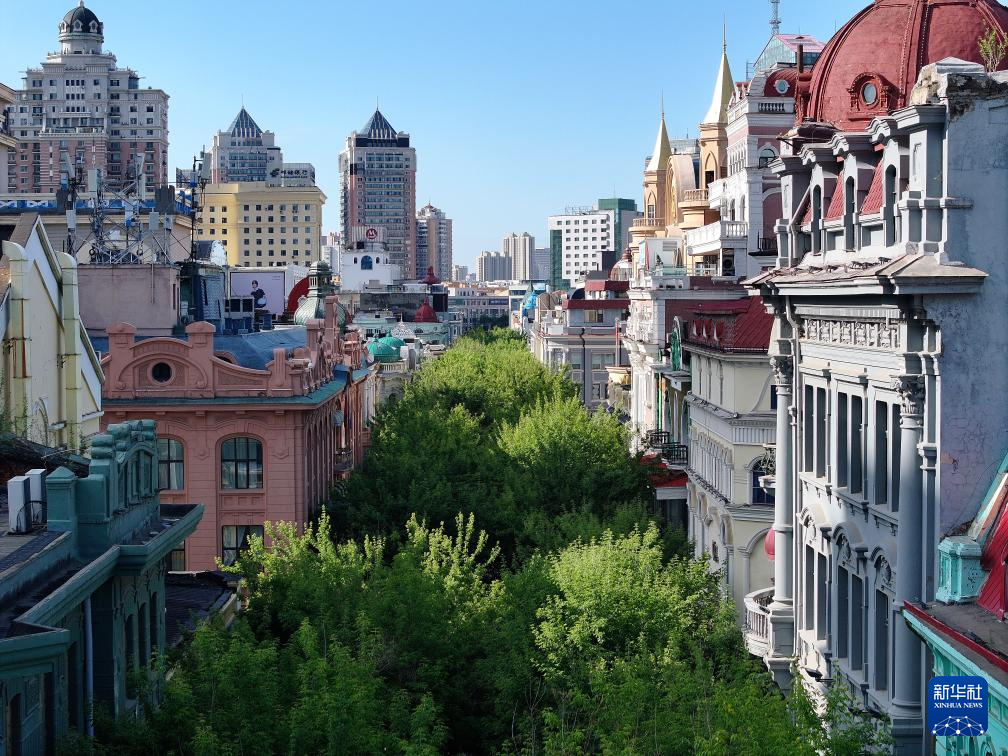 哈尔滨市中央大街(2025年6月11日摄,无人机照片)。新华社发(张树 摄)