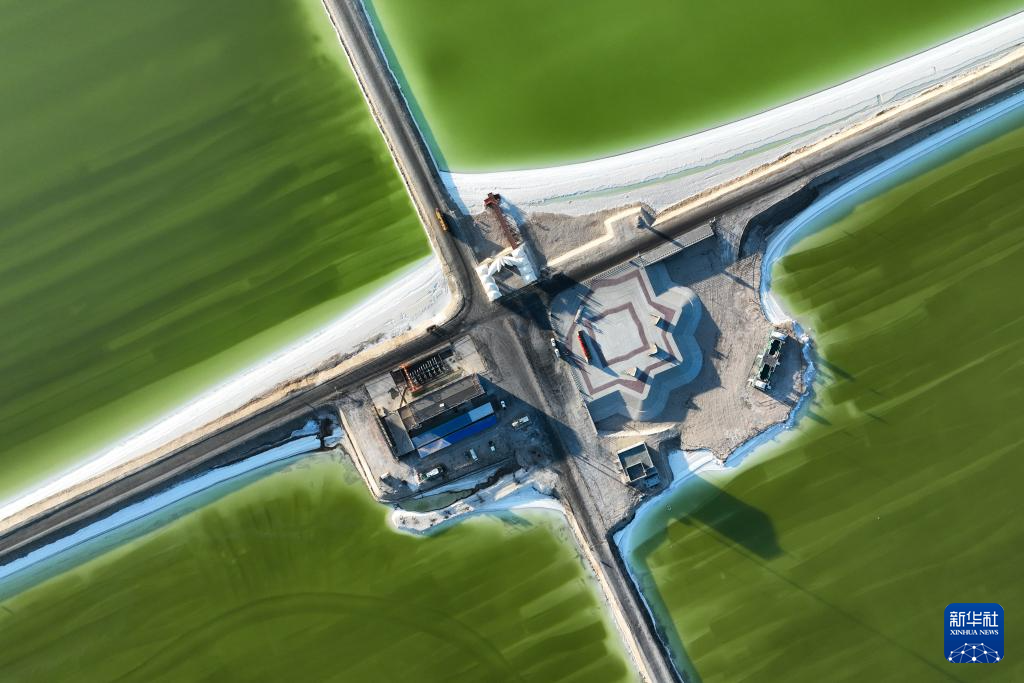 这是2024年11月29日拍摄的青海格尔木察尔汗盐湖一角(无人机照片)。新华社记者 张龙 摄