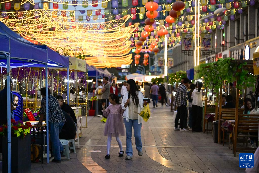 7月2日,市民在青海格尔木的夜市逛街。新华社记者 张龙 摄