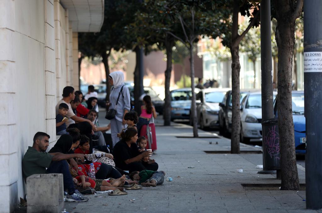 这是9月28日在黎巴嫩首都贝鲁特市中心拍摄的从贝鲁特南郊逃离的流离失所者。新华社发(比拉尔·贾维希摄)