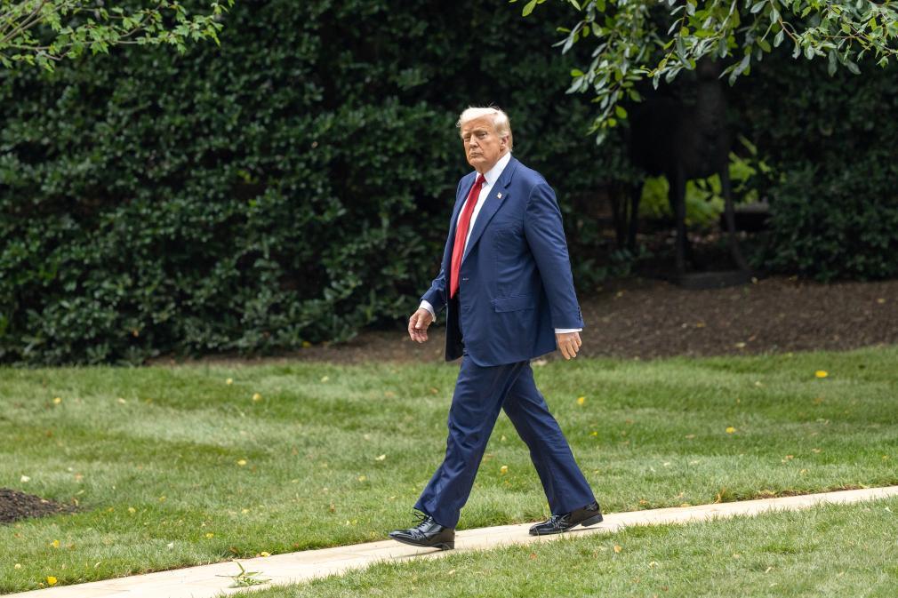 8月1日,在美国首都华盛顿白宫,美国总统特朗普走向南草坪。新华社记者胡友松摄