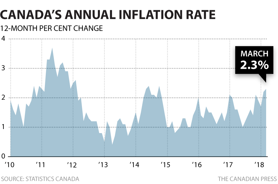 今年3月份,加拿大的通货膨胀率升到 2.3%,为 2014年 10月以来的最高水平,不仅汽油价格大涨,其他几乎所有的东西都在涨价。