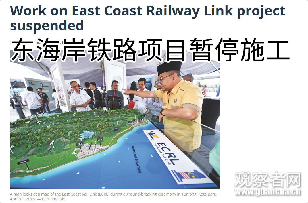 马来叫停三个中资参与项目 报道称,据马来的一位财政部高官介绍,当地时间4日,负责管理东海岸铁路项目的马来西亚铁路衔接公司,和由马来财政部主管、负责监督两条管道的苏里亚战略能源公司,分别致函项目的承建商——中国交建和中国石油天然气管道局,声称因成本过高暂停项目合约。 中国交建在一份声明中回应,称通知函中没有说明停工期限,并指出他们担心停工会产生额外的费用,且还会影响到2250名当地员工以及数百家分包商、供应和顾问公司的生计,对此表示痛心和关切。 马来《光华日报》报道称,中国交建在声明中还表示,愿尊重并遵守马来西亚法律,别无选择之下,只能遵守停工指示。不过也希望双方能通过真诚的谈判,善意地找到双赢的解决方案。 中国石油天然气管道局并未对此事作出回应。![]()