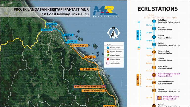 马来西亚东海岸铁路计划的拟议路线 图自马媒