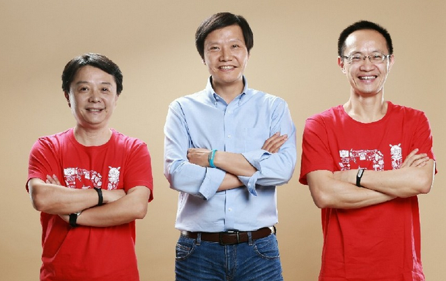 左一为王翔,中间为雷军,右一为小米总裁林斌