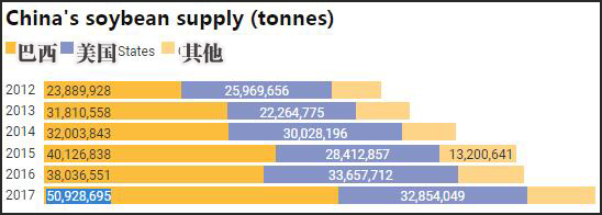 中国大豆进口情况(图源:南华早报)