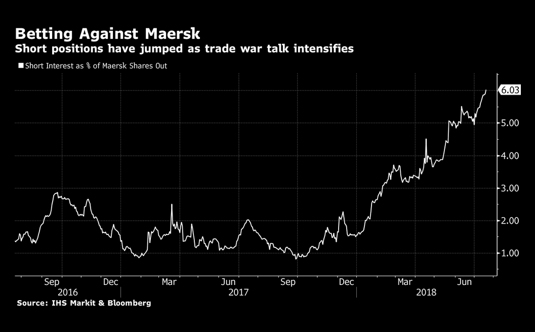 报道称,这一结果的出现,是因为贸易战扭转了全球集装箱航运业的前景,投资者正重新审视选择。 AQR资本管理公司是现在押注马士基的基金之一。7月18日的监管文件显示,该公司的空头头寸相当于马士基股份的0.5%。但该公司拒绝对此作出评价。![]()