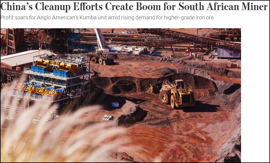 为减少过剩产能并改善空气质量,中国这个世界领先的钢铁生产国正淘汰改造100多台老旧低效高炉。对钢铁行业而言,中国通过用大型工厂替代小煤窑,减少冶炼使用的煤炭,而更好的方式是用更高品位的铁矿石取代低品位矿石。目前,高品位铁矿只占中国每年1000亿美元矿产品贸易的一小部分。 中国对铁矿石需求的转变,令那些含铁量较高的矿石价格出现上涨。目前,铁矿石生产商昆巴正从中受益。 位于南非开普敦的英国金融服务集团耆卫保险公司(OldMutual)分析师伊恩·伍德利(Ian Woodley)说:“我们曾经认为的铁矿石,现在有三个市场:品位为62%的块矿、品位为58%的粉矿,以及含铁量更高的块矿(Lump Ore,铁矿依粒度大小,可分为粉矿及块矿,观察者网注)……现在你必须更加了解这些保费和折扣是多少。” 据了解,品位为62%的块矿,即含铁量62%的铁矿石基准价格,自2016年初以来上涨超过50%,至每吨67美元左右。含有约58%的低品位粉矿,现已在港口堆积起来,每吨仅需38美元。 而含铁量更高、可以直接送入高炉冶炼,而不需要预先处理的优质块矿,买家目前愿意在块矿的基准价格之上每吨再多支付近20美元,可见需求有多强烈。而早在2016年初,该品位铁矿仅溢价4美元。 报道介绍,昆巴是英美资源集团位于南非的一家子公司,其在南非北部开采矿石。昆巴的矿石主要来自一个有着65年历史、名为Sishen的超级矿坑。该矿坑平均铁含量为64.5%,比含铁量62%的铁矿石基准高出2.5个百分点。对昆巴而言,块矿占其销售额的三分之二左右,而它较大的竞争对手,诸如必和必拓、福蒂斯丘(FMG集团,Fortescue Metals Group Ltd.)的块矿销售占比仅为四分之一或更少。 去年,得益于铁矿石价格上涨、市场对铁矿石的需求攀升,加之此前削减了劳动力成本,昆巴的净利润飙升至123.4亿南非兰特。而这一数据在2015年仅为4.69亿南非兰特(约合3580万美元)。 上周,昆巴决定自行派发股息。其批准一项新的支付政策,将向股东支付50%至75%的总收益。昆巴认为,此举反映了其赚钱的能力。事实上,由于火车脱轨以及兰特强劲等原因,昆巴2018年上半年的利润下降了36%。 “这是一个相当困难的时期,但转变非常重要,”昆巴的首席执行官Themba Mkhwanazi在接受采访时表示。他在今年早些时候的财报电话会议上称,该公司2017年的表现为“同花大顺”。而中国购买了昆巴约六成的矿石。 据了解,2015年,铁矿石平均价格下跌42%至每吨56美元,而最近价格每吨超过190美元。这意味着,2015年时,昆巴公司陷入困境。 2016年初,英美资源集团有意将昆巴出售,然而因找不到买家而不得不取消。公司随后解雇了位于Sishen矿坑的数千名矿工。 随着中国实施《大气污染防治行动计划》,并削减钢铁产能,昆巴的命运迅速扭转。2017年,它成为约翰内斯堡证券交易所表现最好的公司,其股价涨幅超过一倍。 不少采矿高管和分析师都认为,未来高品位铁矿石的溢价将保持不变。 不过,《华尔街日报》表示,这种胜利可能是短暂的,因为许多大型铁矿石生产商纷纷加强对高品位矿石的开采。 今年6月,全球市值最大的矿业公司和第三大矿产出口商必和必拓公司表示,将在澳大利亚新建一座新矿,将其铁矿石平均品位提升一个百分点至62%。两周前,全球第四大矿石运输商福蒂斯丘集团也表示,其现有铁矿石品位较低,将出口高品位铁矿。
