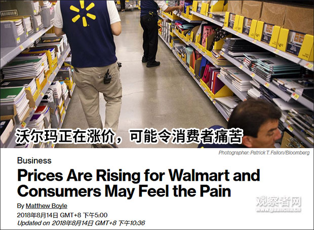 彭博社8月15日报道,与加征关税部分相关的运输和原材料成本的飙升致使宝洁(Procter & Gamble Co.)、雀巢(Nestle SA)、可口可乐(Coca-Cola Co.)等公司今夏宣布在一系列主要消费品上涨价。