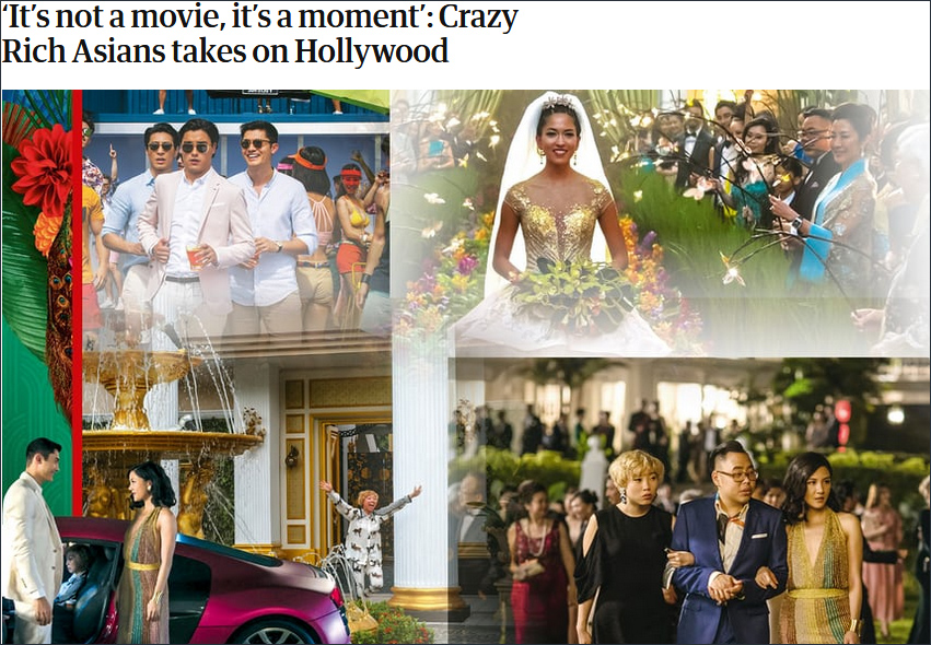 英国《卫报》刊文题为《这不只是一部电影,这是一个时刻》的文章指出,根据美国南加州大学的研究显示,亚裔美国演员在好莱坞几乎不会有出演主要角色的机会,一般情况下他们能获得的台词不超过5%,好莱坞上一部以亚裔演员为主的影片是1993年的《喜福会》。