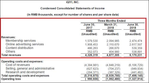 “广播电视和在线平台公司越来越多地制作自己的原创内容,不仅是为了吸引付费用户,也是为了营销、手机游戏开发和其他新的收入来源。” Teoh称。 “此外,有线电视和在线平台内容的分销可以在国内外市场产生丰厚的回报。” 但是,报道特别提到,与奈飞不同的是,中国公司更多地依赖广告和赞助。 “为了留住现有用户并吸引新用户,在线平台公司正大举投资,以创造和获取独家内容。” Teoh说道,“如果内容成本继续飙升,这种激进的投资将变得不可持续。” 爱奇艺下半年对内容投资达总收入80% 8月1日,登陆美股的爱奇艺公布了上市之后的第二份成绩单——截至2018年6月30日的第二季度未经审计的财务报告。 从财报来看,爱奇艺的会员收入在第二季度再次实现稳定增长,与在线广告收入再次“平起平坐”,一同贡献超八成营收。二者分别实现营收25亿元(约合3.74亿美元)、26亿元(约合3.956亿美元),同比各增长66%、45%。 截至2018年6月30日,爱奇艺会员规模达6710万,同比增长75%,与一季度的6130万相比也有不小增量。 “第二季度和三季度的主要驱动因素还是会员增长”,爱奇艺CFO王晓东在财报发布后的分析师电话会议中表示。![]()