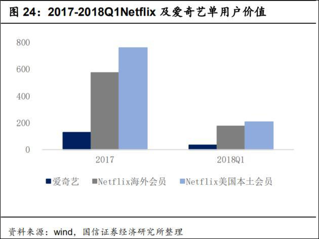 2017-2018Q1Netflix 及爱奇艺单用户价值 图自相关研报