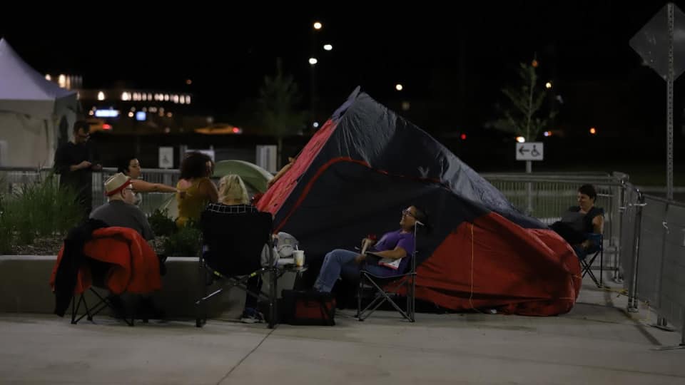 加拿大广播公司报道说,有几十个人在星期二晚上就到了停车场,拿着折叠椅,带着帐篷,有的开着拖车。