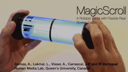 最近,来自加拿大女王大学的一个研究小组推出了一款可以完全卷起来的平板电脑 ——??MagicScroll?。