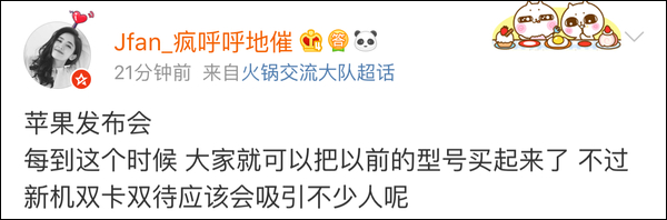 很多老果粉看了这一刻意迎合中国市场的操作反而有点难过,比起乔布斯时代产品的不断创新突破,现在的苹果也开始失去先锋思维随波逐流了。