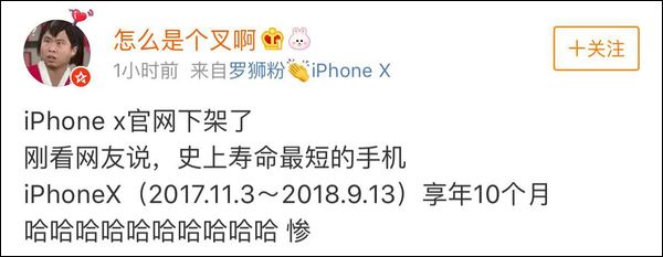 苹果公司早就猜到了,于是今天一早已经把iPhone X下架了…… 这一晚上真精彩,iPhone XS成了首款双卡双待手机,而它的前任iPhone X却成了苹果史上最命短手机,享年10个月。