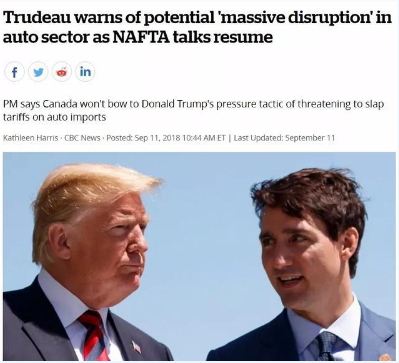 前几天,加拿大总理特鲁多还对外发出警告声称,如果谈不妥一个好的协议条件出来,加拿大宁可退出,也不会委曲求全加入NAFTA。并希望加国老百姓要做好准备迎接美国汽车关税的冲击。