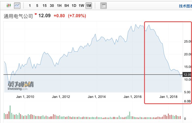 百年巨头为何沦落 在约翰·弗兰内里之前,通用电气有过五任CEO,他的前任伊梅尔特任职16年,韦尔奇执掌公司长达20年。约翰·弗兰内里在通用电气工作了30多年,可谓“根正苗红”。可是,公司债台高筑和股价狂跌,压垮了弗兰内里,让他成为公司“最短命”的CEO。 从2016年底的高点到今年9月份,通用电气股价跌幅超过60%,蒸发了约1760亿美元。从约翰·弗兰内里上任时算起,公司市值也蒸发了超过1000亿美元(约合人民币6868亿元)。长期来看,进入21世纪,通用电气的市值已经蒸发了大约5000亿美元,相当于一个脸书公司。