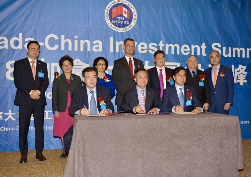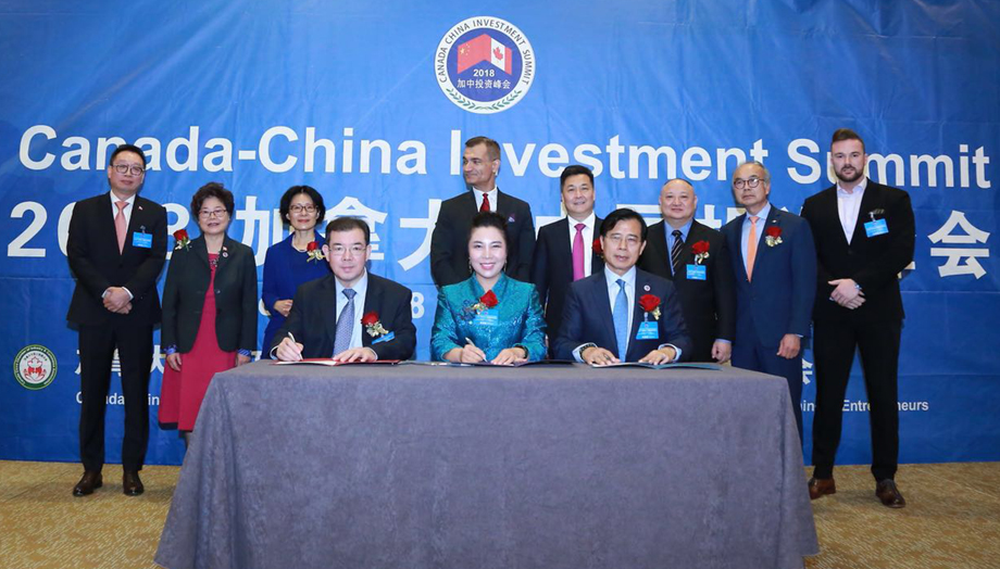 ?? 俞善君商务参赞、爱康集团董事长王东、加拿大币泉数字交易所董事长韩冬梅、Freelife Solutions公司董事长潘先财等分别在演讲中分享了中加投资环境分析、加中贸易快乐的源泉、北美数字化经济潮流、中国高铁免费礼品精准营销等相关主题。??? 峰会上,共有9个合作项目签约,涉及金融、医疗、电子商务、贸易等多个领域。