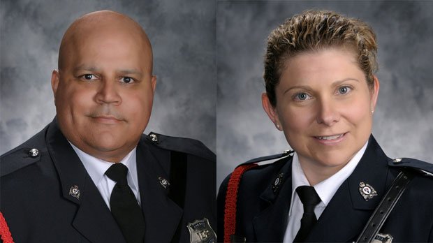 据加通社的最新消息称,两名殉职警员分别是Const.?Lawrence Robb Costello和Const. Sarah Burns。其中45岁的Costello(下图左)已经从警20年,遗下四名子女,包括两名已成年的女儿。