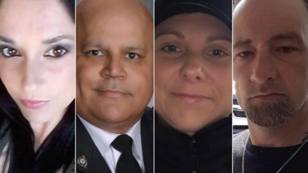 加拿大 Fredericton枪杀案件4位死难者从左到右分别是 Bobbie Lee Wright, 32, Constables Lawrence Robert (Robb) Costello, 45, Sara Mae Helen Burns 43, Donald Adam Robichaud, 42 / Facebook/Fredericton Police Force