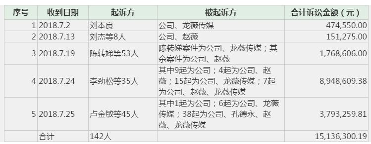 凤凰网财经启阳路4号出品 文|杨越欣 实习生付宇彤编|彭彬 7月30日,西藏龙薇文化传媒有限公司(以下简称“龙薇传媒”)发生两项变更,公司负责人由赵薇变更为彭胜凯;董事和经理一职也由赵薇变更为彭胜凯。但目前龙薇传媒尚未发生股权变更,赵薇仍持有公司95%股份。 2017年赵薇因试图以51倍杠杆收购万家文化股份被证监会处罚,和其丈夫黄有龙共同被禁入证券市场5年。自去年被证监会处罚以来,“女版巴菲特”赵薇回归娱乐圈,频频在机场、综艺节目中露面,而其资本运作大幅减少。 多位证券维权律师向凤凰网财经表示,已经启动受损股民维权,由于此案事实清楚,胜诉概率大。 凤凰网财经粗略统计发现,目前股民的索赔金额合计已经超过5000万元。 对于赵薇退出西藏龙薇文化传媒有限公司一事,有受损投资者表示:“别让赵薇跑了。” 空手套白狼 赵薇在资本市场的“滑铁卢”要从2016年冬天说起。 2016年11月2日,龙薇传媒注册成立,注册资本为200万人民币,其中赵薇认缴出资190万元。 2016年12月26日,祥源文化的前身——浙江万好万家文化股份有限公司(以下简称“万家文化”)发布公告称,龙薇传媒与万家文化第一大股东万好万家集团有限公司(以下简称“万家集团”)于2016年12月23日签署《万好万家集团有限公司与西藏龙薇文化传媒有限公司之股份转让协议》。 根据协议,万家集团将其持有的1.85亿股转让给龙薇传媒,占公司流通股股份总数29.14%。转让完成后,万家集团持有的股份将减少至882.23万股,占公司总股本的1.39%,而万家文化的第一大股东将由万家集团变更为龙薇传媒,赵薇取代孔德永成为万家文化的实际控制人。 为获得这次转让的1.85亿股,龙薇传媒需要支付30.59亿元,具体根据协议安排分四次向万家集团支付股份转让价款。 赵薇的明星效应对股价产生了直接影响,其强势加入使万家文化立即受到资本市场的追捧。2017年1月12日万家文化股票复牌后,股价从复牌时的18.83元连续大涨,最高涨至25元,涨幅高达32.77%。 但就在一个月后,2017年2月13日,万家集团与龙薇传媒签订补充协议称,双方拟将转让股份的比例由原来的29.135%减少为5.0396%,转让股份调整为3200万股,转让金额调整为5.29亿元,仅为原先计划转让的六分之一。 这次变更引起监管部门的注意。万家文化在2月23日回复浙江证监局监管关注函的公告中,对转让股份比例缩水进行解释称,“龙薇传媒表示,本次股份转让方案公布后,经与多家金融机构沟通,龙薇传媒判断无法按期完成融资计划,故需要变更本次股份转让事项。” 龙薇传媒实际拥有的资金真相令人震惊。事实上,龙薇传媒自有资金仅为6000万元,剩余资金均从银行等其他机构融资得来,杠杆比例高达51倍。 据万家文化公告,龙薇传媒原计划从某银行某支行融资,但因为该项目融资金额较大,最终并未获批,而其他银行也口头反馈表示无法完成审批,“因此,龙薇传媒判断无法按期完成融资计划。”仅有西藏银必信愿意在第一次付款阶段向龙薇传媒提供首笔1.9亿元借款。 五天后的2月28日,万家文化收到证监会的《调查通知书》,其中称:“因你公司涉嫌违反证券法律法规,根据《中华人民共和国证券法》的有关规定,我会决定对你公司进行立案调查,请予以配合。” 该消息传出后,万家文化股价狂跌不止。凤凰网财经统计,自2017年2月13日万家文化发布公告至8月7日收盘,其股价跌幅达52%。 2017年3月31日,龙薇传媒弃购万家文化股票,双方签署了《关于股份转让协议和补充协议之解除协议》。关于解约理由,万家集团表示:“我公司在龙薇传媒提出终止转让的提议后,考虑到本次股份转让事项引起了社会及市场等各方的高度关注,质疑很多,已经给上市公司带来了严重的负面影响,故,在龙薇传媒提议终止后,经公司慎重考虑,同意接受解除协议的安排以尽快了结上述事项,此项决定是公司自主做出的商业判断和决策。” 经过证监会调查后,2017年11月8日,已更名为浙江祥源文化股份有限公司(以下简称“祥源文化”)的万家文化收到证监会的《行政处罚及市场禁入事先告知书》。公告显示,“龙薇传媒在自身境内资金准备不足,相关金融机构融资尚待审批,存在极大不确定性的情况下,以空壳公司收购上市公司,且贸然予以公告,对市场和投资者产生严重误导。”并且,龙薇传媒在筹资计划和安排的信息披露方面存在虚假记载、重大遗漏。 2018年4月11日,证监会发布《行政处罚决定书》,称证监会举行听证会并复核后,已审理终结万家文化、龙薇传媒等信息披露违法违规行为案。 证监会作出决定:对万家文化和龙薇传媒给予责令改正,给予警告,并处60 万元罚款;对孔德永给予警告,并处30 万元罚款;对黄有龙、赵薇、赵政给予警告,并分别处以30 万元罚款;并且对孔德永、黄有龙、赵薇分别采取5 年证券市场禁入措施。 索赔金额已达5000万元 据证券维权律师介绍,龙薇传媒信息披露违规,让许多追随赵薇的股民因持有祥源文化股票而蒙受巨大损失,沦为“韭菜”。在证监会处罚下达后,股民维权条件具备。 2018年6月20日,祥源文化发布公告称,收到法院《应诉通知书》,公司涉及29起证券虚假陈述责任纠纷案件,诉讼金额共计人民币1668.48万元。截止6月20日,祥源文化累计共收到61起证券虚假陈述责任纠纷案件,诉讼金额共计人民币1840.41万元。 其中61名投资者为原告,被告除祥源文化外,