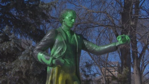 里贾纳市的这座雕像今年2月份曾被人泼上绿色颜料。蒙特利尔市的麦克唐纳雕像则是在不到一年的时间里第三次遭人破坏。