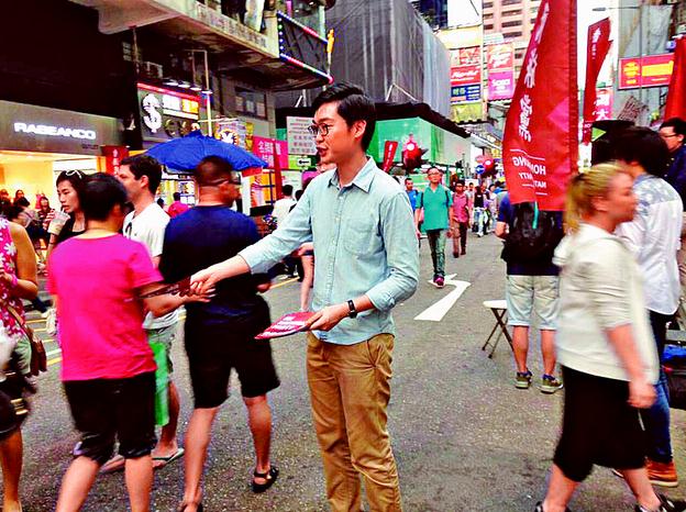 2016年,“香港民族党”摆街站派发“港独”传单。图片来自大公网