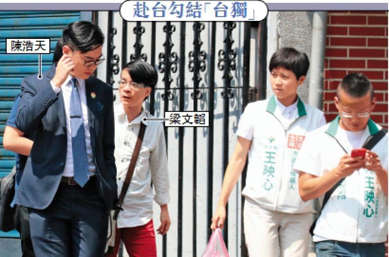 陈浩天早前到台北参加“台独”分子梁文韬策划的“两独”合流记者会/图片来自大公网