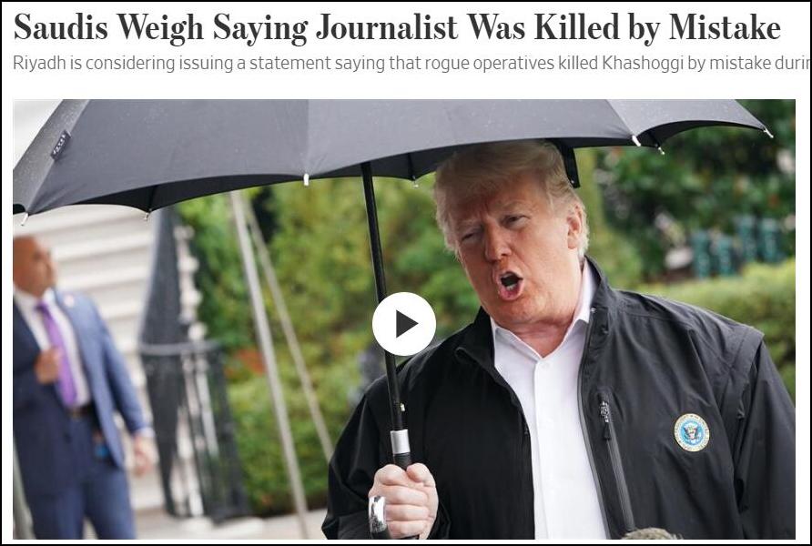 对此目前的外交灾难,萨勒曼似乎也考虑过补救措施。《华盛顿邮报》10月15日报道,知情人士表示沙特政府准备发布声明,承认对卡舒吉的审讯不当,导致其错误被杀。