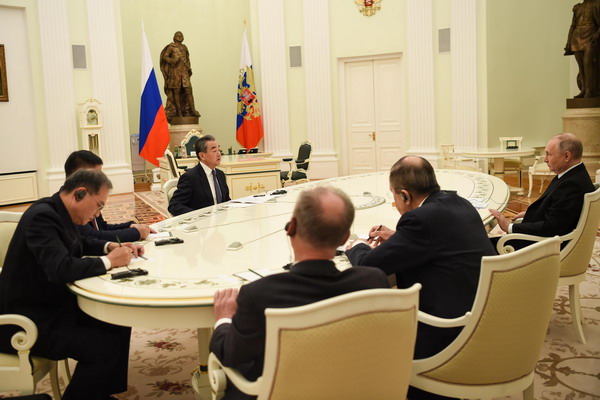 当地时间2023年2月22日,俄罗斯总统普京在莫斯科会见中共中央政治局委员、中央外事工作委员会办公室主任王毅。