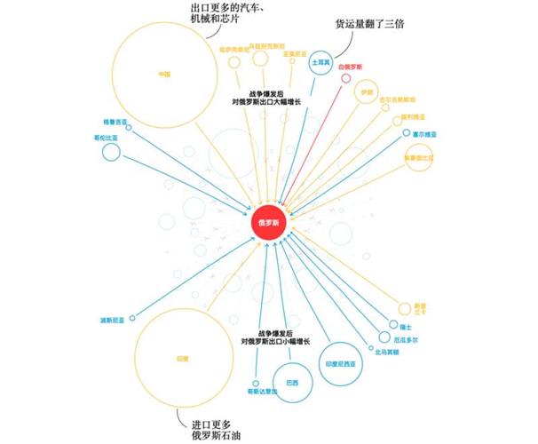 制裁封锁了飞机零部件和电子产品半导体等关键产品的进口。数以百计的企业自愿停止在俄业务,导致俄罗斯民众失去了苹果零售店和Netflix订阅。但制裁的打击并不如西方预期那样沉重。位于华盛顿的非营利组织西尔维拉多政策加速器收集的数据显示,有少数国家填补了缺口,对俄罗斯的出口增长远高于战前水平。还有些国家的出口在开战之初有所下降,但随后也已回升。