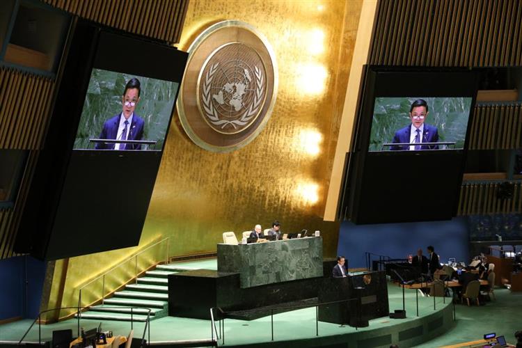 2月23日,在位于纽约的联合国总部,中国常驻联合国代表团临时代办戴兵在联合国大会乌克兰问题紧急特别会议上指出,无论困难多大,政治解决的大门不能关上,推动尽快实现停火止战是当务之急,输送武器不会带来和平。新华社记者 谢锷 摄