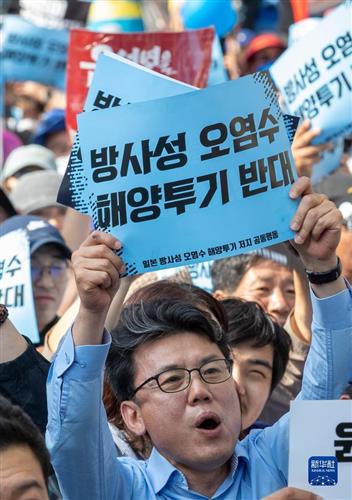 韩国最大在野党共同民主党党首李在明参加了这一集会。李在明说,日本政府核污染水排海计划,“不顾邻国是否蒙受损失,不顾全球海洋是否遭到污染,对此韩国总统和韩国政府没有理由赞同”。