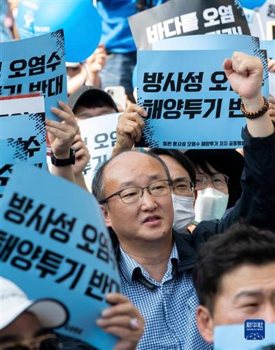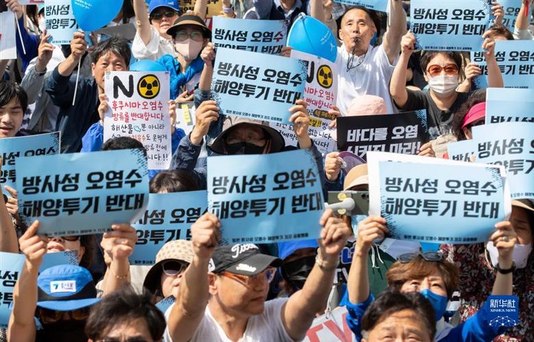 当日下午,韩国“韩日历史正义和平行动”、《6·15共同宣言》韩方实践委员会等市民团体和从各地赶来的民众聚集在首尔市世宗大路,举行“阻止日本放射性污染水排海全国行动”大会,敦促日本政府采取负责任的行动、停止推进核污染水排海计划。