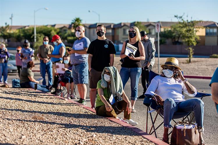 当地时间2020年10月17日,美国拉斯维加斯,选民排队参加美国大选提前投票。
