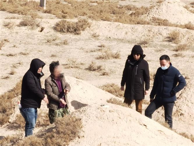 犯罪嫌疑人在甘肃景泰县指认盗墓现场。桂林市公安局供图