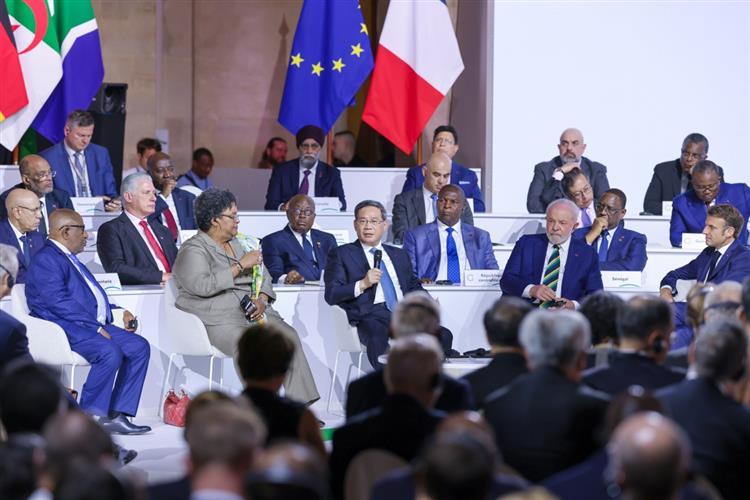 当地时间6月23日上午,国务院总理李强在巴黎出席新全球融资契约峰会闭幕式并发表讲话。 新华社记者 刘彬 摄