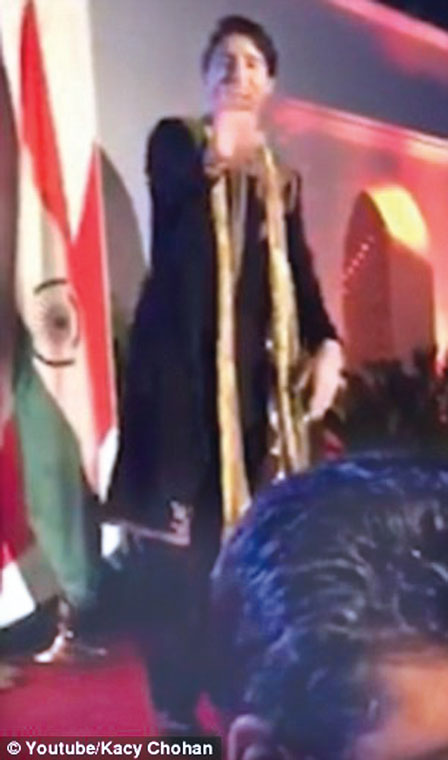 据英国《每日邮报》(Daily Mail)报道,杜鲁多于当地时间周四晚间在新德里加拿大高级专员公署(Canadian High Commission)的一场私人晚宴中,跳起印度传统舞蹈"bhangra"。他当晚再以印度服饰亮相,伴随鼓声走上舞台,随音乐晃动,得到观众喝彩。