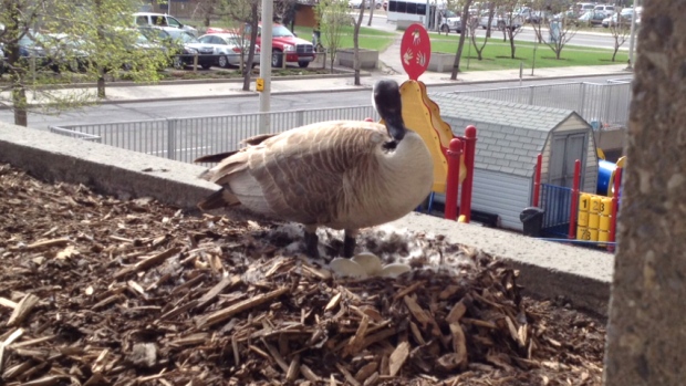 杜瓦尔说, 现在一些聪明的鹅意识到市中心要比野外舒适。几年前,居然有一只鹅在卡尔加里市政厅门口台阶不远处做窝下蛋。