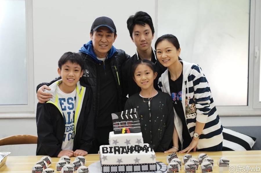 晒全家福为张艺谋庆生是陈婷都要做的事,去年张艺谋67岁生日时,陈婷带着三个孩子在剧组帮丈夫庆生。