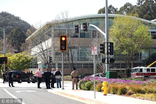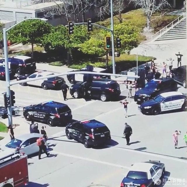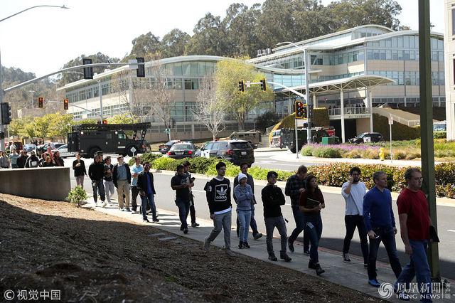 当地时间2018年4月3日,美国加州圣布鲁诺,YouTube总部发生了枪击事件,一家医院说已经接受了很多病人。图为被困民众在警方指引下离开。供图:SOCIAL MEDIA/视觉中国 文字来源:国是直通车