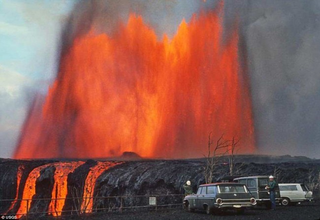 【环球网科技综合报道】据英国《每日邮报》4月6日报道,美国地质勘探局(USGS)近期发布在推特上的一张绝美照片,吸引了众网民视线。照片中喷射的岩浆呈罕见的半球型,高达65英尺(约合20米)。该照片摄于夏威夷群岛基拉韦厄火山约50年前的一次大爆发时。