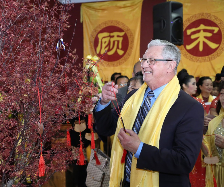 最后,歌唱家陈拾宽演唱《我的中国心》,台下参拜人员一起挥舞小旗,共同祈福华夏繁荣昌盛,祝愿世界和平和谐,将活动推向高潮,戊戌年加拿大华人恭拜轩辕黄帝大典圆满礼成。
