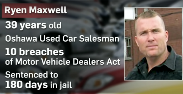 39岁的Ryen Maxwell是奥沙华一间二手车行的销售员,2014年9月至2016车5月期间,他在位于Simcoe Street South的车行Countryside Motors工作。