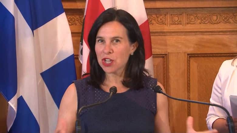 ?蒙特利尔市长 Valérie Plante 周二举行新闻发布会?(CBC)